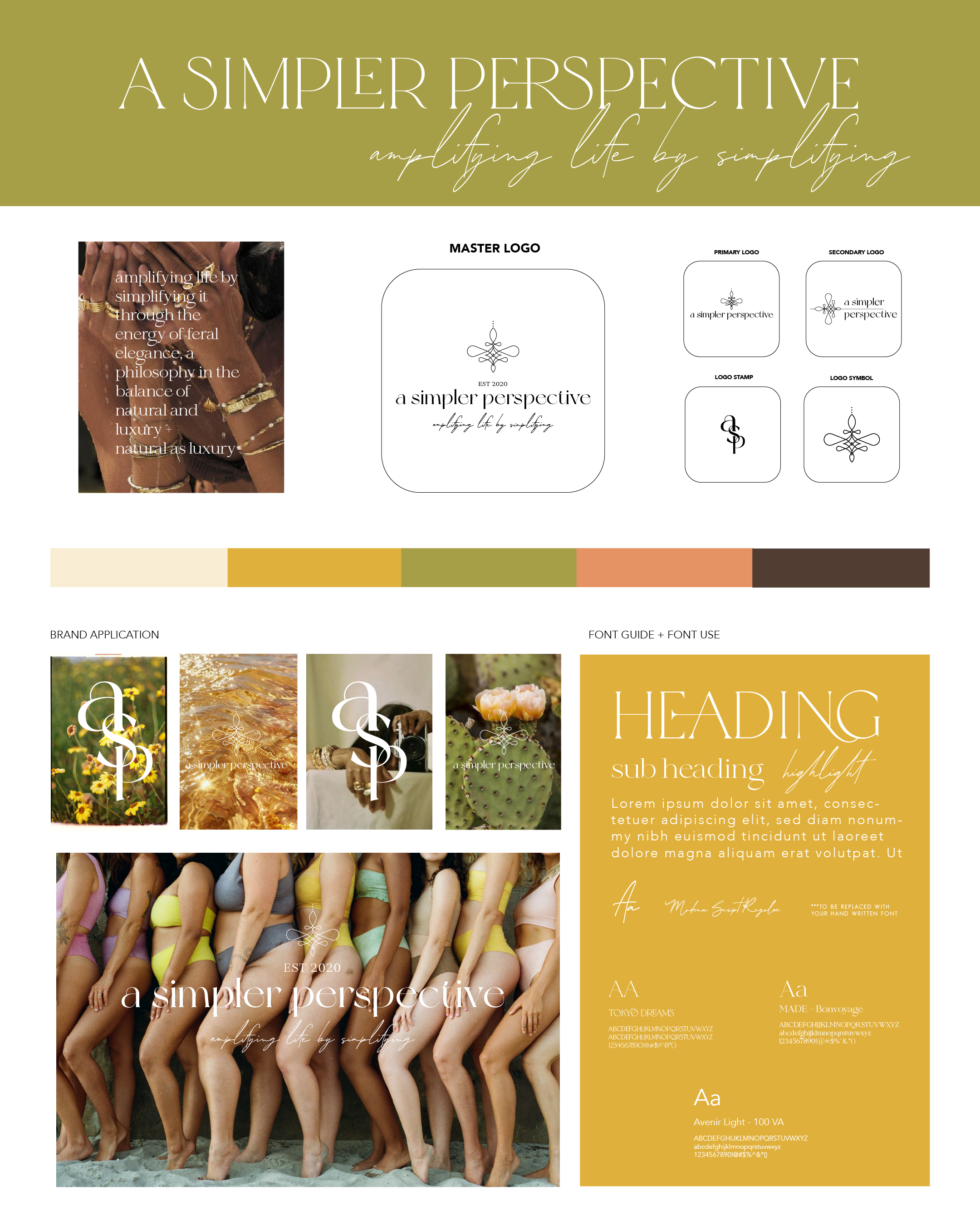 The approach for A Simpler Perspective was to bring all of the brand’s offerings under one clear, cohesive identity. Acting as strategist and creative director, we developed a full branding suite including logo, type family, color palette, and image direction, alongside website design and development. Brand and marketing strategy, product development and design, and photography for brand, lifestyle, and product were all built together to create a single platform that felt organized, intentional, and ready to grow.